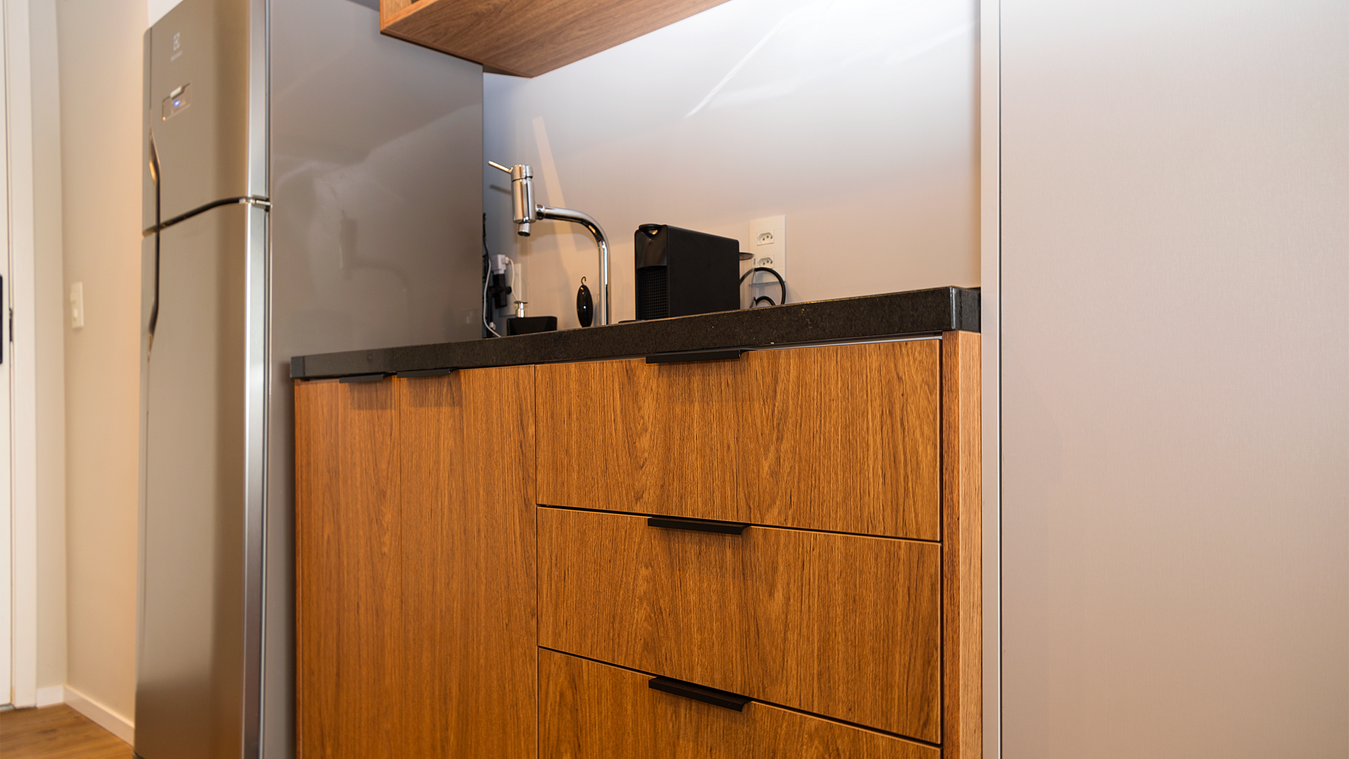O estúdio possui 23 m² muito bem distribuídos, equipado com cama Queen Size (1,98 x 1,58), enxoval completo, amenities Phytoervas, smart TV, internet de 600 mega dedicada, cozinha completa com cafeteira Nespresso e água filtrada (Planeta Água PURE 9), garantindo o pH entre 6 e 8.