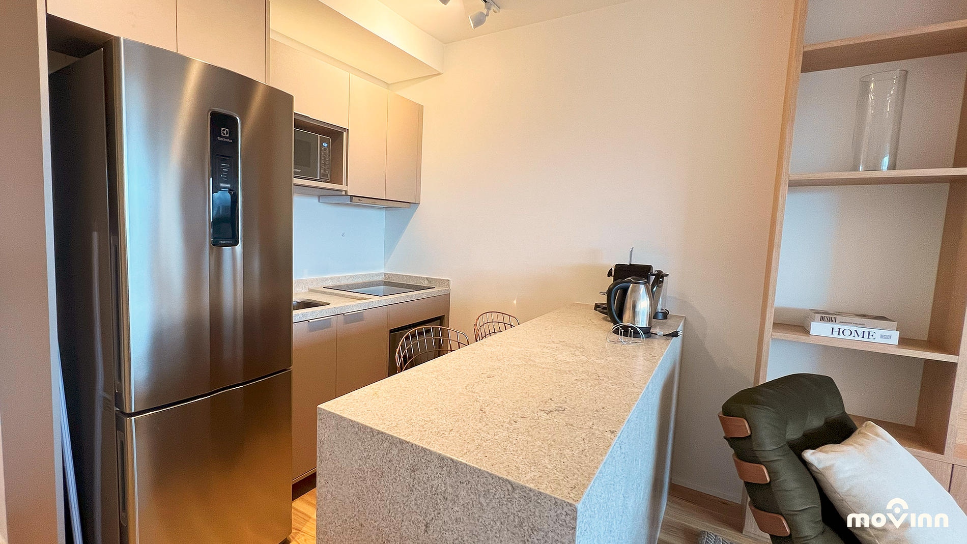 O Apartamento: Com 66 m², o apartamento é completamente equipado para garantir o máximo conforto, conta com cama King Size (1,93 m X 2,03 m) enxoval Trousseau, sala decorada e equipada, Smart TV, amenities Phytoervas, máquina lava e seca, cozinha com cooktop, exaustor, geladeira, forno elétrico, micro-ondas, cafeteira Nespresso, lava louças e água filtrada diretamente da torneira (Planeta Água PURE 9), com pH entre 6 e 8, prezando pela qualidade e bem-estar. Além disso, oferece uma excelente estação de trabalho