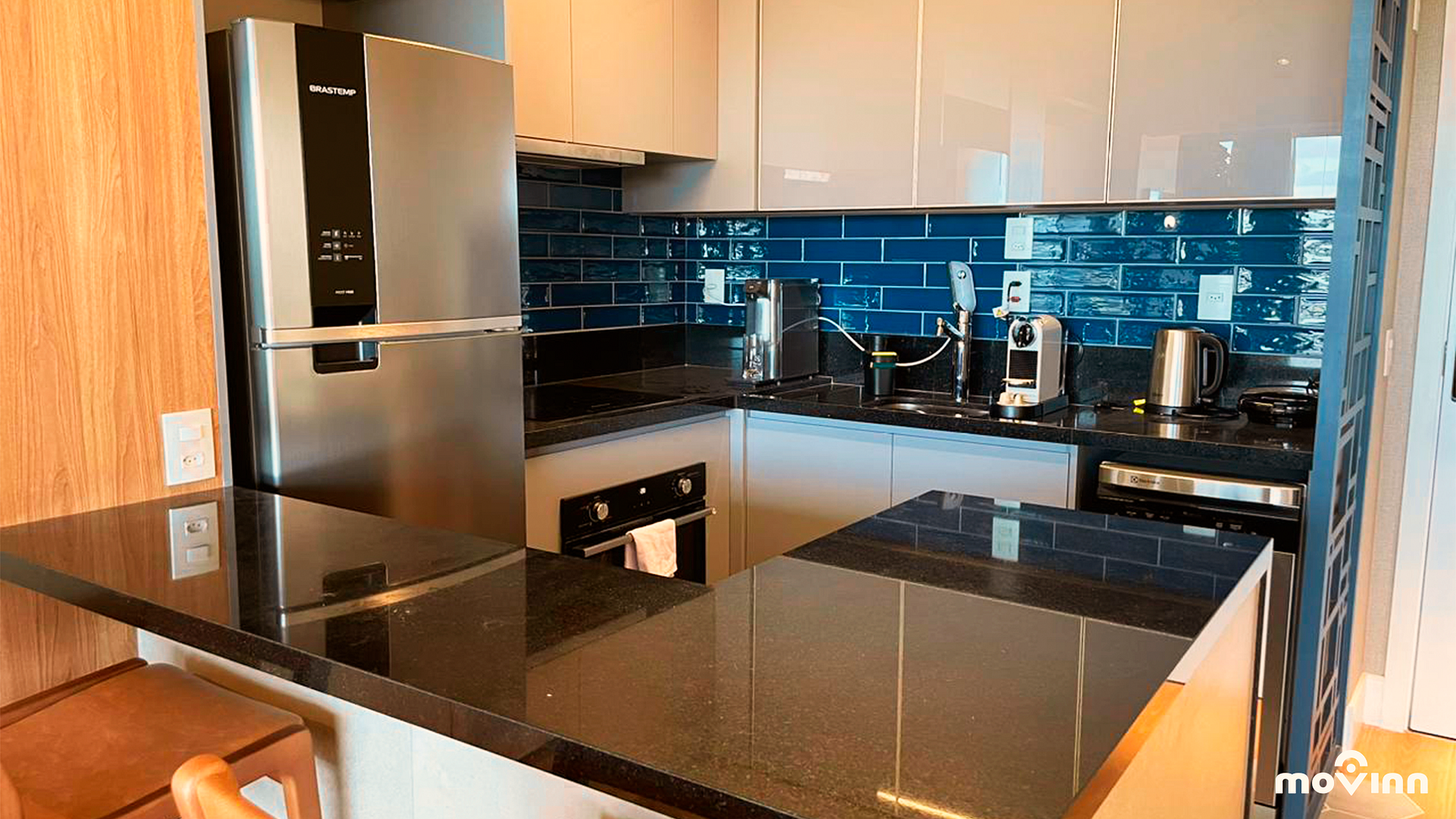 O Apartamento: Com 66 m², o apartamento é completamente equipado para garantir o máximo conforto, conta com cama King Size (1,93 m X 2,03 m) enxoval Trousseau, sala decorada e equipada, Smart TV, amenities Phytoervas, máquina lava e seca, cozinha com cooktop, exaustor, geladeira, forno elétrico, micro-ondas, cafeteira Nespresso, lava louças e água filtrada diretamente da torneira (Planeta Água PURE 9), com pH entre 6 e 8, prezando pela qualidade e bem-estar. Além disso, oferece uma excelente estação de trabalho