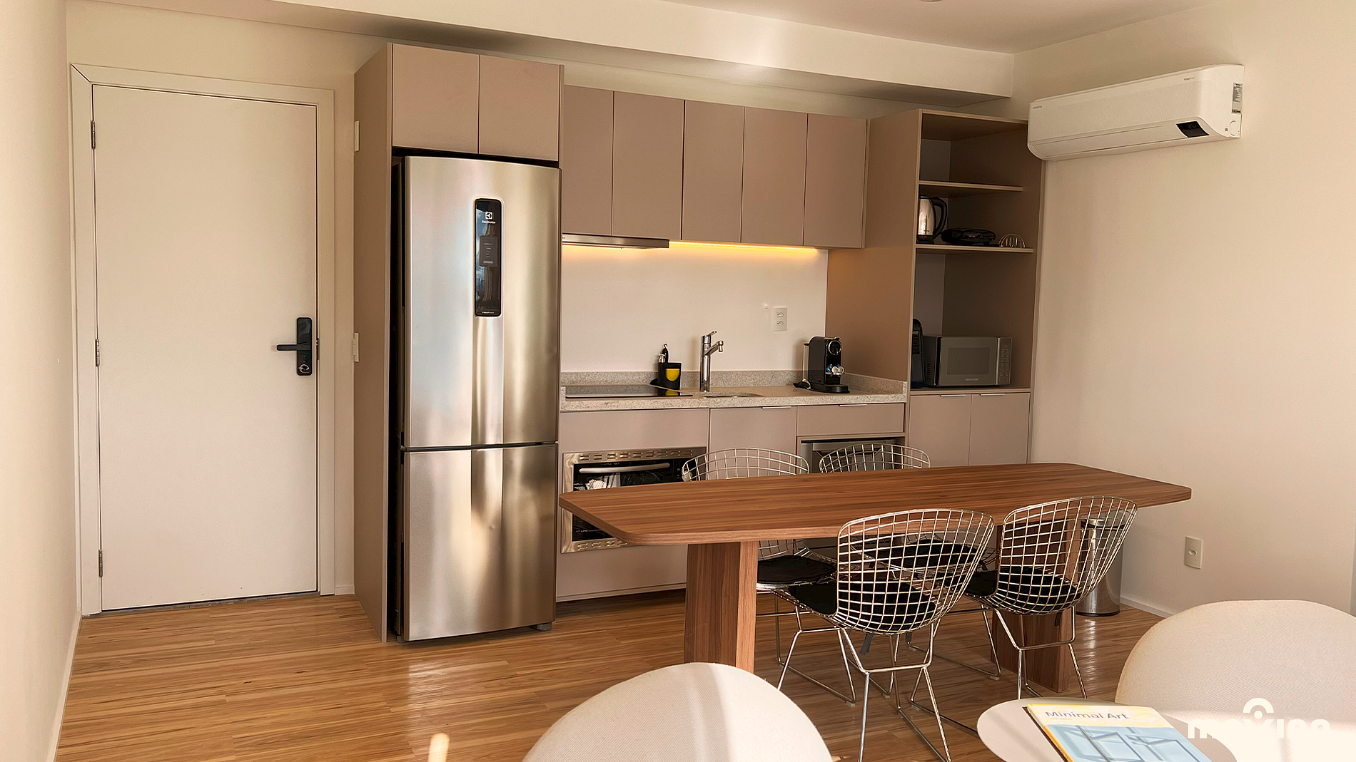 O Apartamento: Com 85 m², o apartamento é completamente equipado para garantir o máximo conforto, com dois quartos , uma suíte com cama King Size (1,93 m X 2,03 m) e o quarto individual com cama de casal (1,38 m X 1,58 m), enxoval Trousseau, sala decorada e equipada, Smart TV, amenities Phytoervas, máquina lava e seca, cozinha com cooktop, exaustor, geladeira, forno elétrico, micro-ondas, cafeteira Nespresso, lava louças e água filtrada diretamente da torneira (Planeta Água PURE 9), com pH entre 6 e 8, prezando pela qualidade e bem-estar. Além disso, oferece uma excelente estação de trabalho
