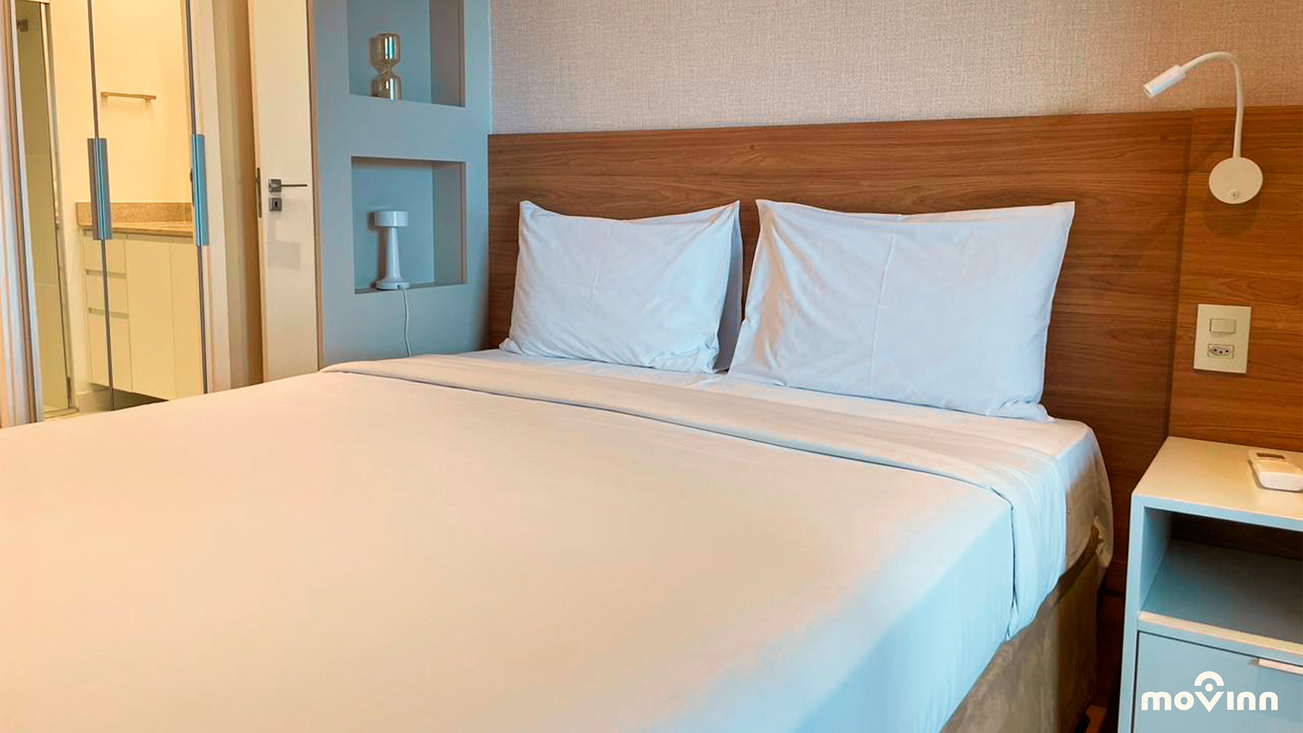 • Troca de Enxoval: O enxoval será trocado após sete noites, com custo incluso na reserva, o horário será agendado pela equipe. Caso haja necessidade de troca antecipada, será cobrada uma taxa adicional, mediante agendamento com a Movinn. A lavagem do enxoval pelo hóspede não é permitida, pois as peças requerem cuidados específicos em lavanderias profissionais, em caso de descumprimento, será cobrado o valor integral do kit.