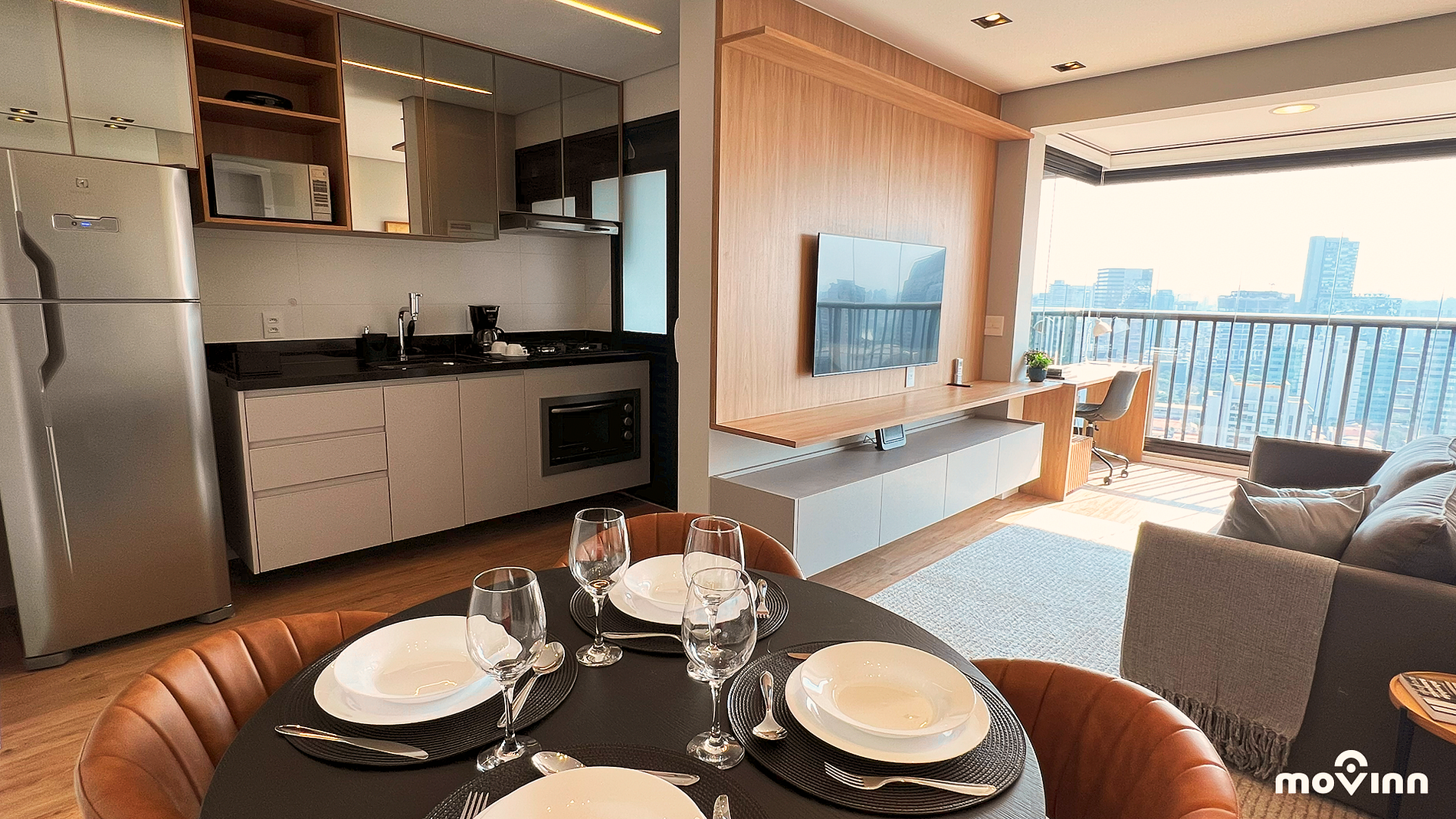 Ampliar Pinheiros by MOVINN garantiza todas las comodidades con un servicio exclusivo. Nuestros apartamentos están equipados con lavadora, cocina completa, cama Queen Size (1,58 x 1,98), ropa de cama completa Niazi, Smart TV, amenidades Phytoervas, sala de estar con muebles modernos y nuevos.
