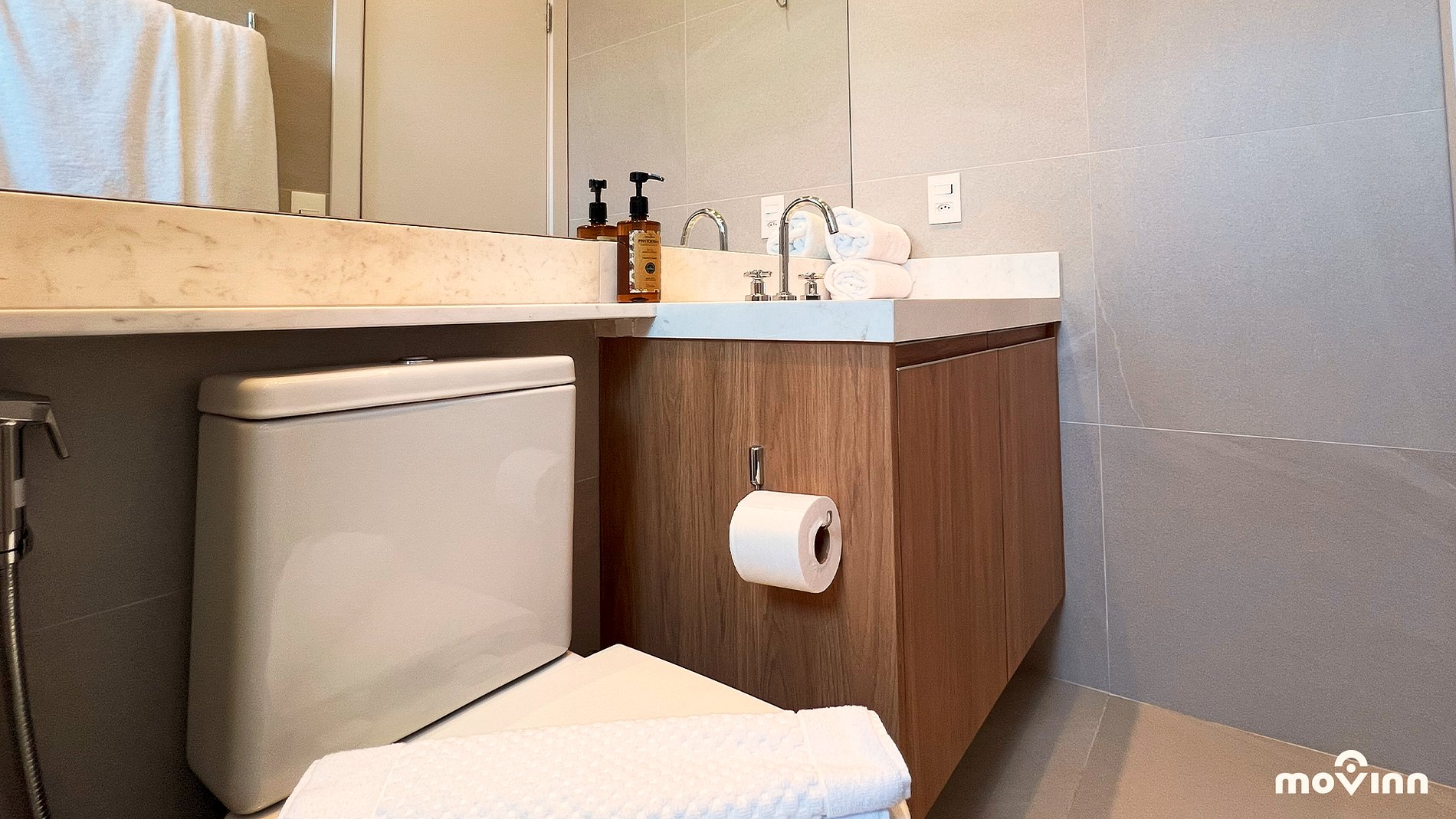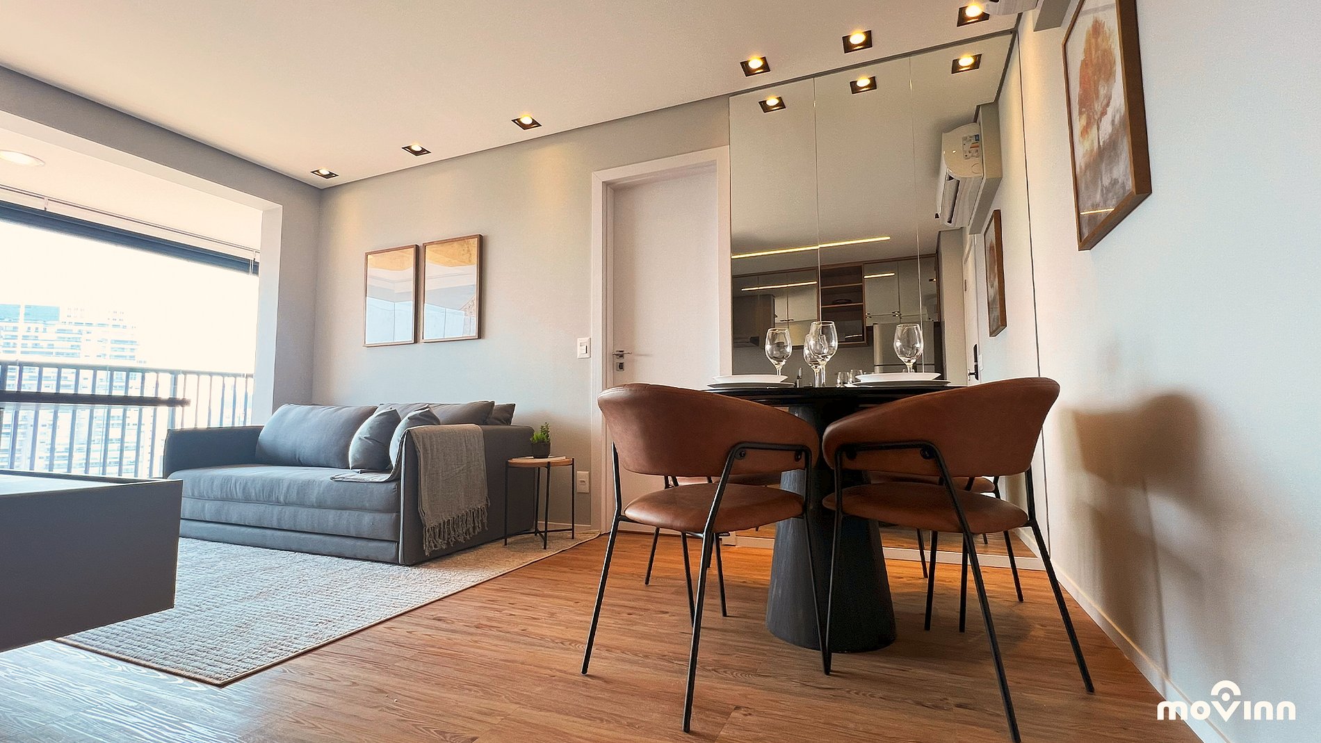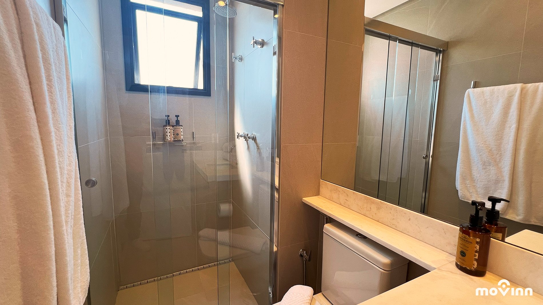 Com serviço de arrumação diária, o apartamento tem 48 m² e está completamente equipado para seu conforto, conta com uma cama Queen Size (1,58 x 1,98), sofá cama, enxoval completo da Niazi, Smart TV, amenidades Phytoervas, máquina de lavar, além de uma sala decorada com móveis modernos e novos, a água filtrada (Planeta Água PURE 9) está disponível, com pH entre 6 e 8, garantindo qualidade e bem-estar.