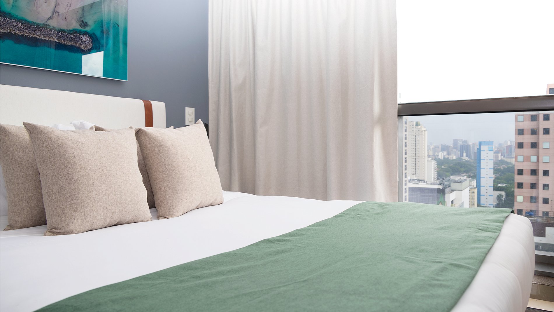 Apartamento novo de 33m² nos Jardins, com cama Queen Size, enxoval completo, smart tv, internet de 600 mega, ar-condicionado e cozinha completa.